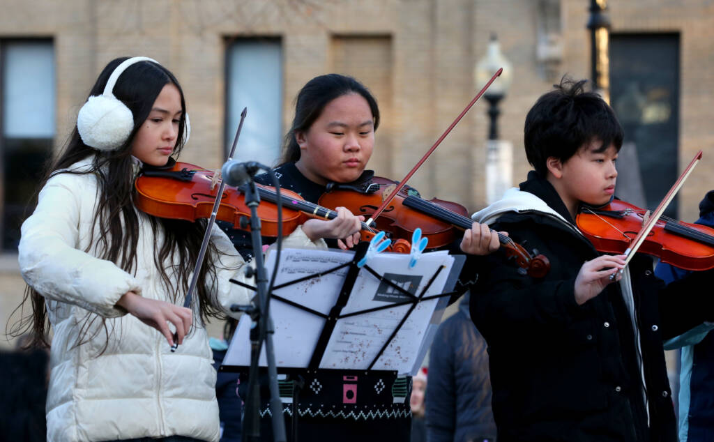 We work to get to know and collaborate with our community, continuously strengthening it. Our longest-standing community performance is the Roslindale Tree Lighting event. This year, Boston City Councilor Enrique Pepen joined our students on the stage, accompanying them on the bells. City Councilor Pepen will be joining us again as our Master of Ceremonies at our annual Spring Concert. We treasure our relationship with him and hope to build more community relationships like it. Our community supports our students and sees real value in our program.
