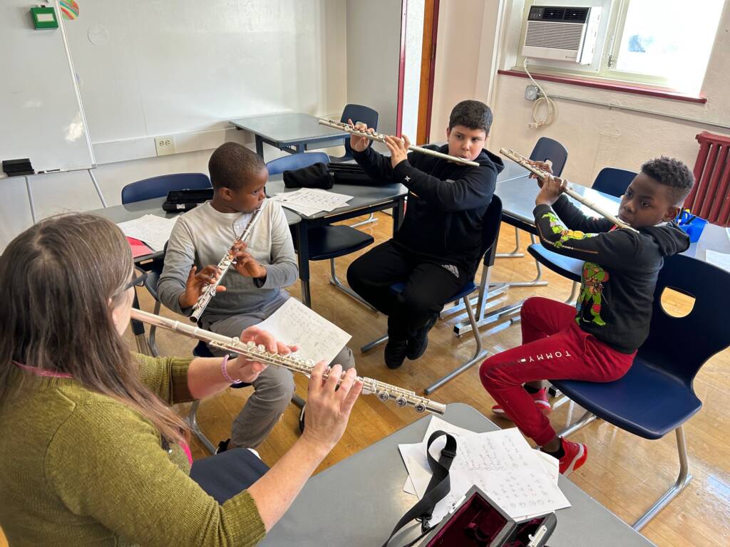 Making Music Matters is a collaborative school-based and grant-funded partnership in four Boston Public Schools in West Roxbury and Roslindale: Kilmer, Mozart, Ohrenberger, and Philbrick. Students receive instrumental group lessons in clarinet, flute, trumpet, and violin during the regular school day. While many other music programs happen after or before school, we do our lessons during the day so that families don’t have to worry about altering their schedules, finding transportation, and finding the pathway for their kids to receive quality education.
