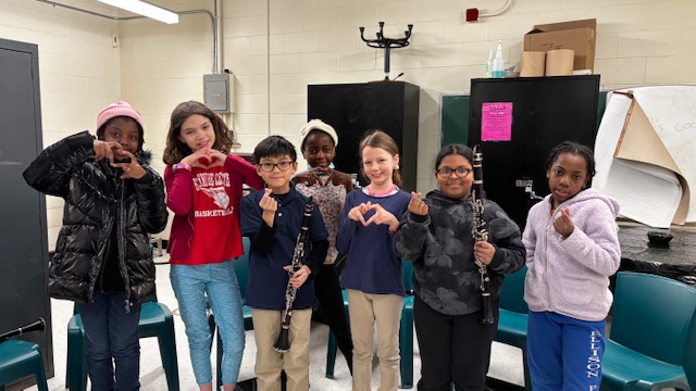 Our third graders play all four core instruments: clarinet, flute, trumpet, and violin. In fourth grade, they choose one and stick with it through fifth grade. This way, students leave the program with a solid foundation in one instrument.